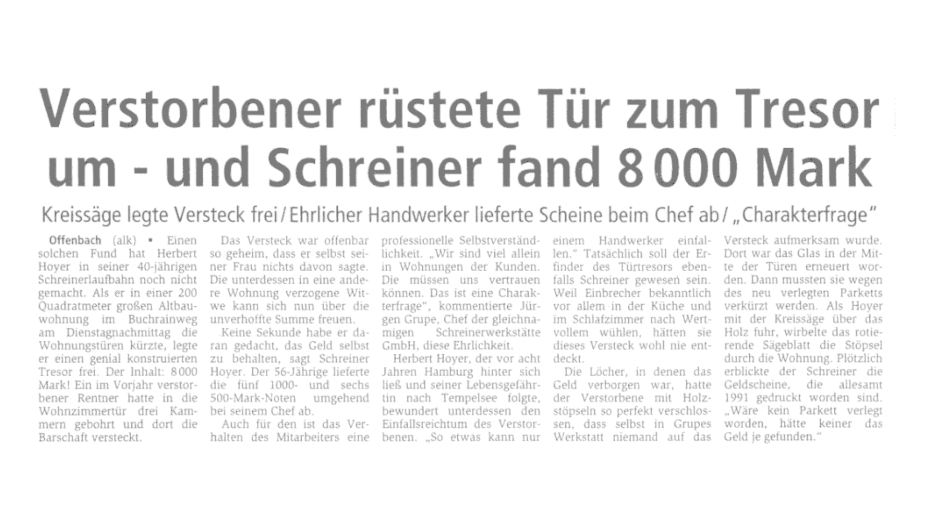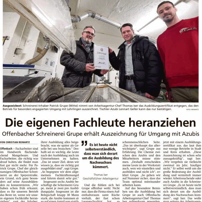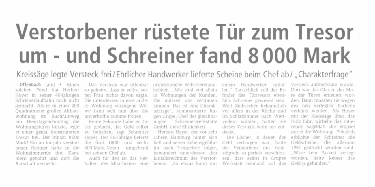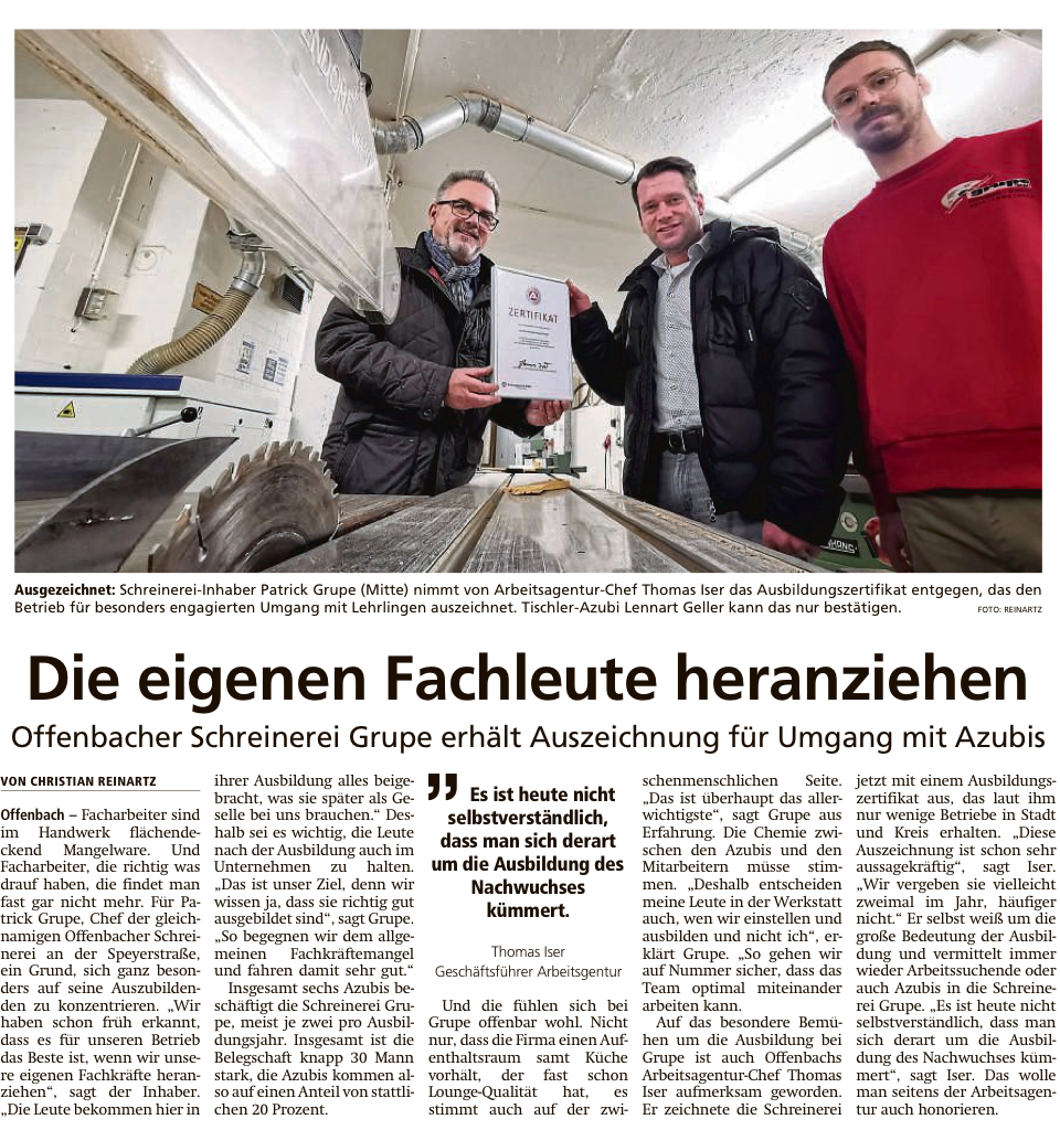 Seit 1932 steht die Schreinerei & Glaserei Grupe für Qualität, Zuverlässigkeit und handwerkliche Kompetenz im Rhein-Main-Gebiet.